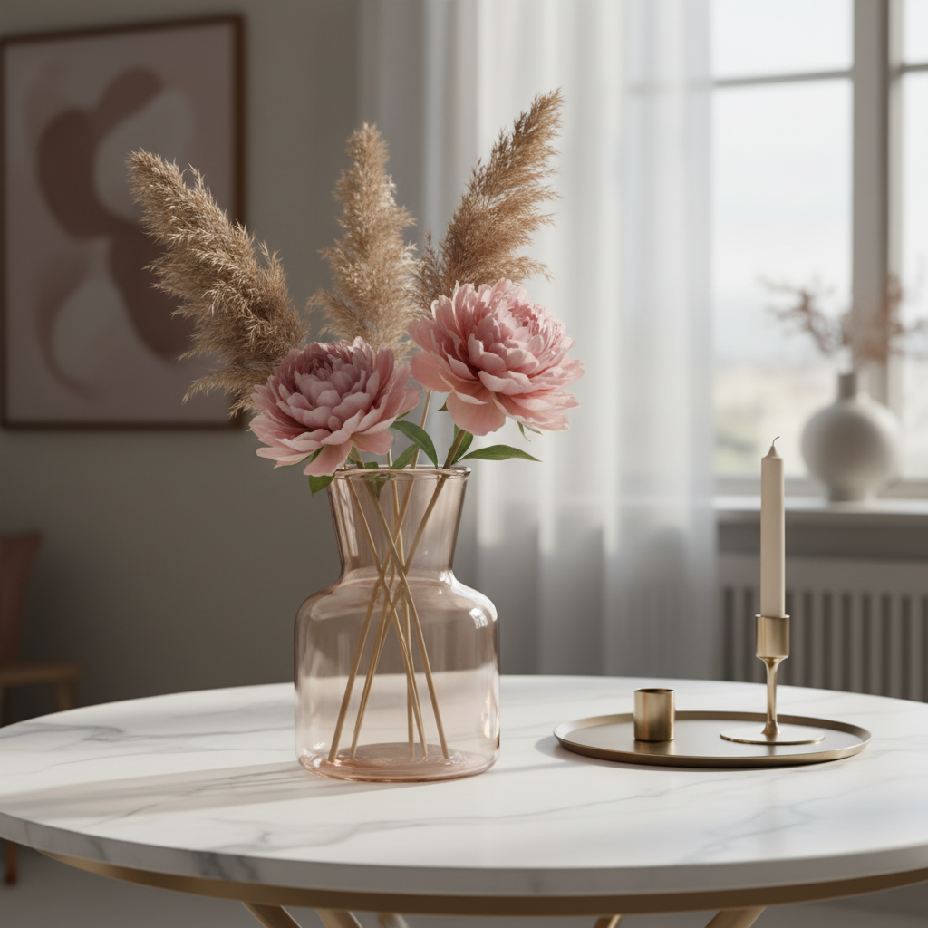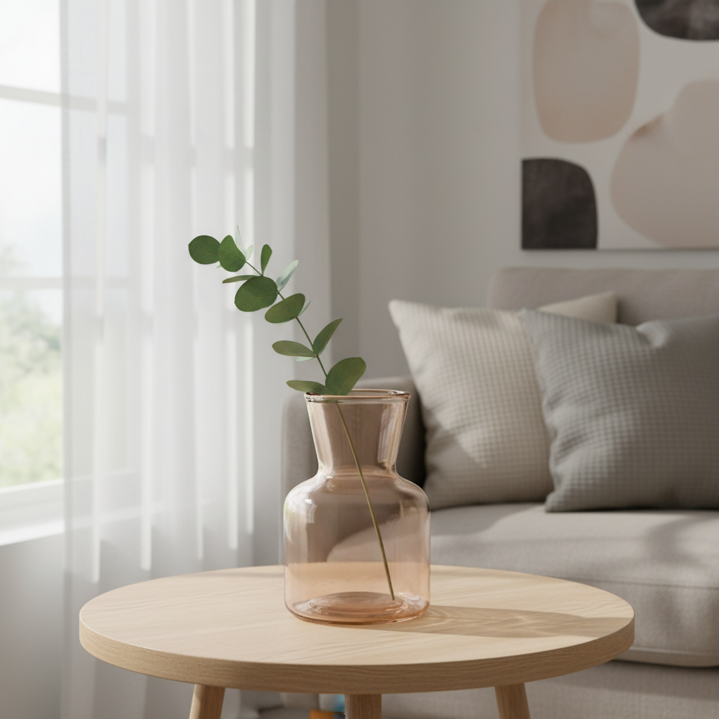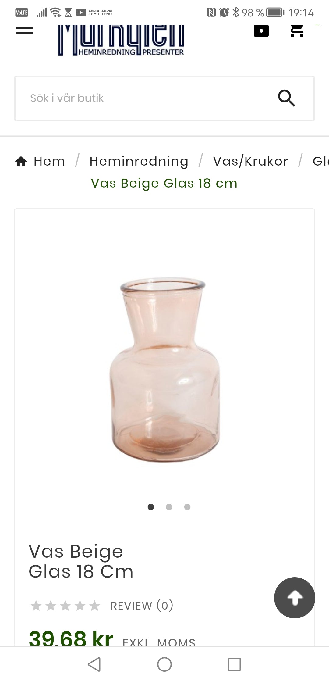 Vacker beige vas i glas. Funkar lika bra på det dukade bordet som på skänken.