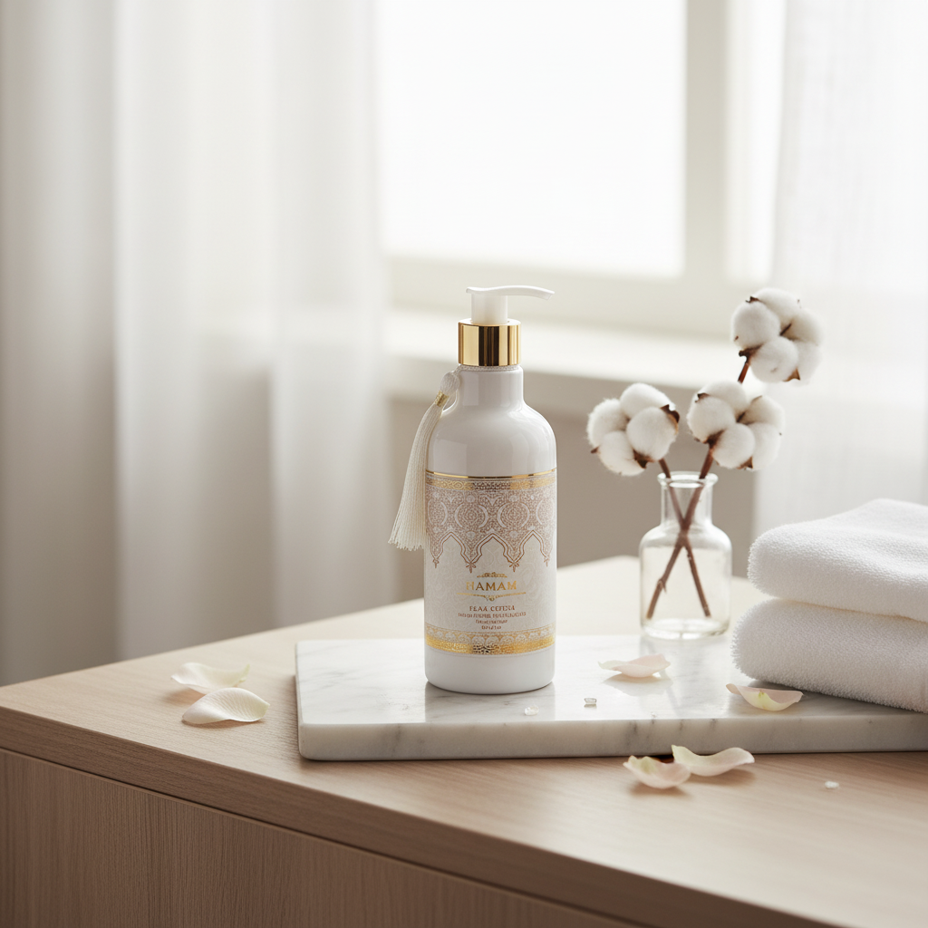Fräsch handlotion med pump, En ljuvligt av nytvättat bomull.