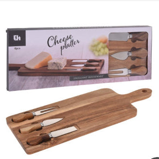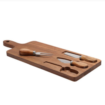 Snygg ostbricka i trä, 3 tillhörande ostknivar. Perfekt till helgmyset eller som en present.